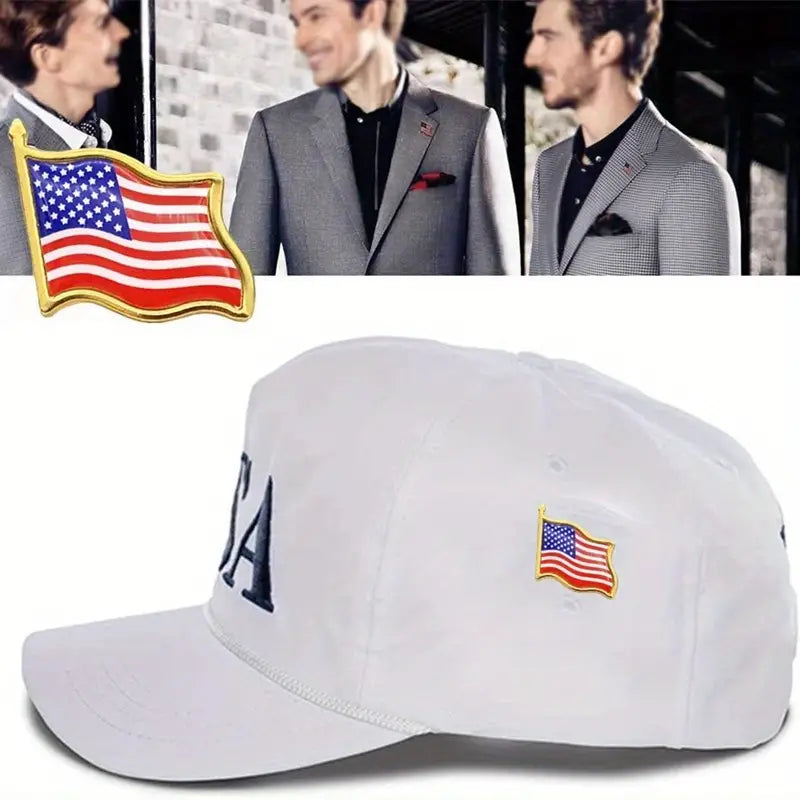 American Flag Lapel Trucker Hat Pin - Patriotic USA Waving Flag Badge Pin