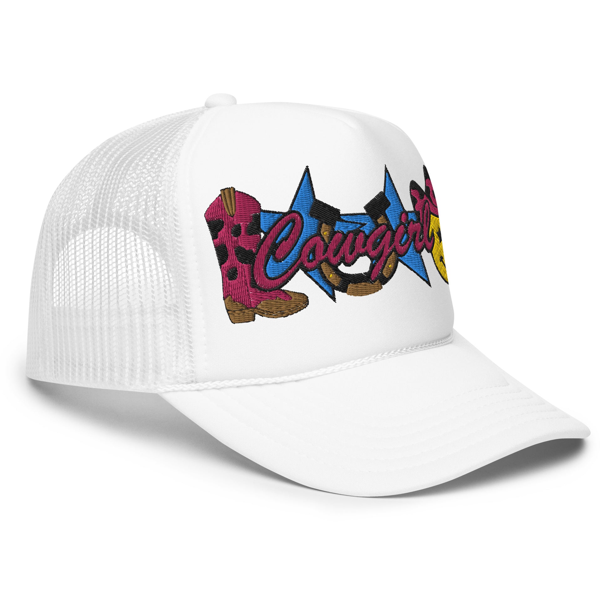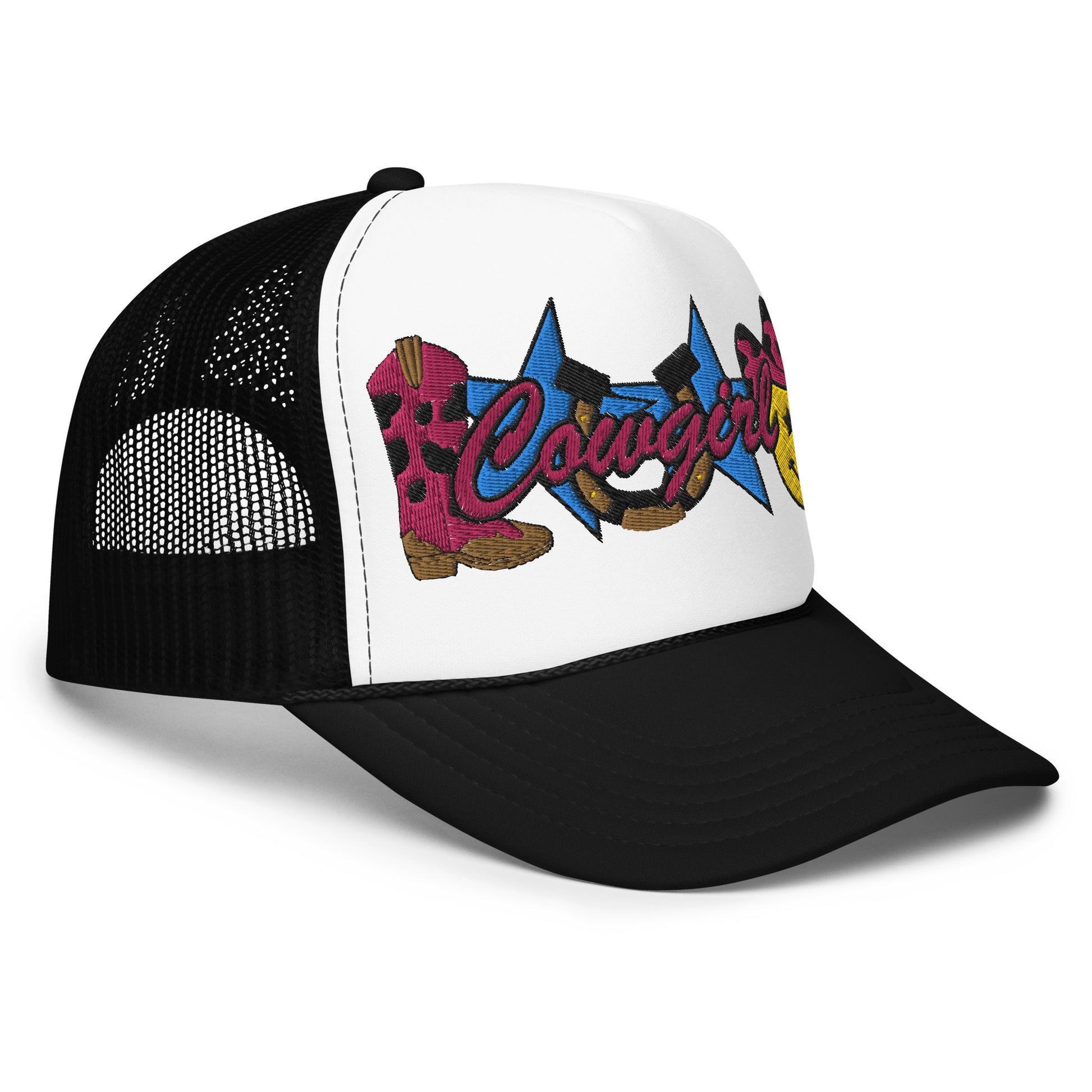 Saddle up and ride in style with our Cowgirl Embroidered Patches Otto Foam Trucker Hat!