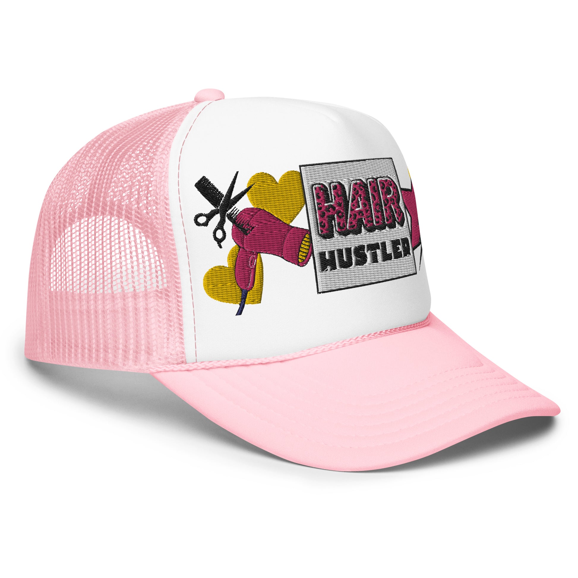 Whether you're behind the chair crafting stunning new looks or out and about running errands, the Hair Hustler Embroidered Patches Otto Foam Trucker Hat is the perfect accessory to showcase your love for your craft. So wear it proudly, and let your hat reflect your dedication and style as you hustle and slay!