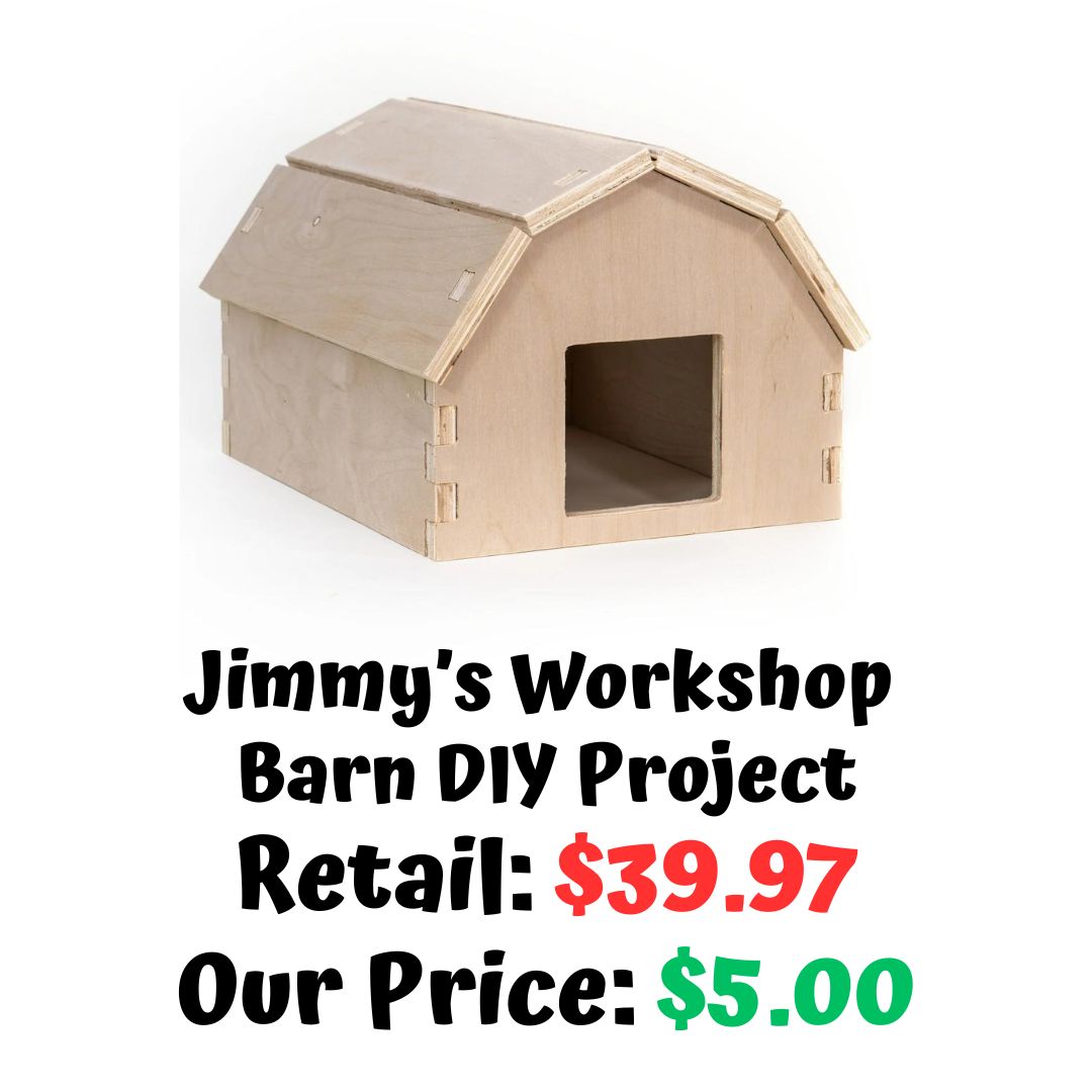 Jimmy's Workshop DIY Barn is the perfect woodworking project for beginners and a great way to bond with kids and adults alike. Easy to assemble and built to last, this sturdy barn can be personalized with paint, decals, stickers, and more, making it a creative and enjoyable experience for everyone.