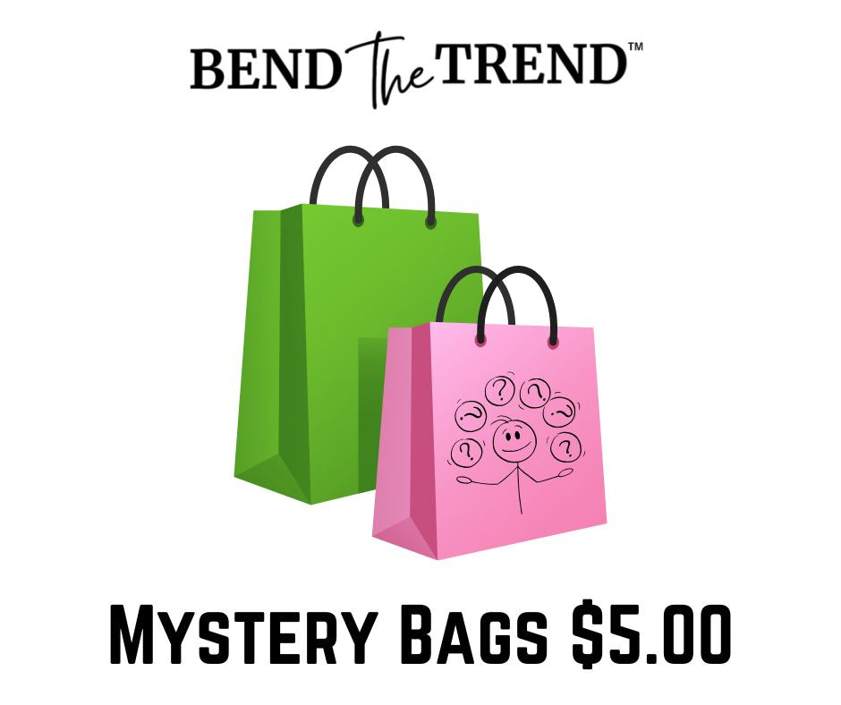 Mystery bags are only $5 and contain decorative items and home goods (up to $50 value) - some even include gift certificates for Bend The Trend! There is no clothing in the bags, so one size fits all!